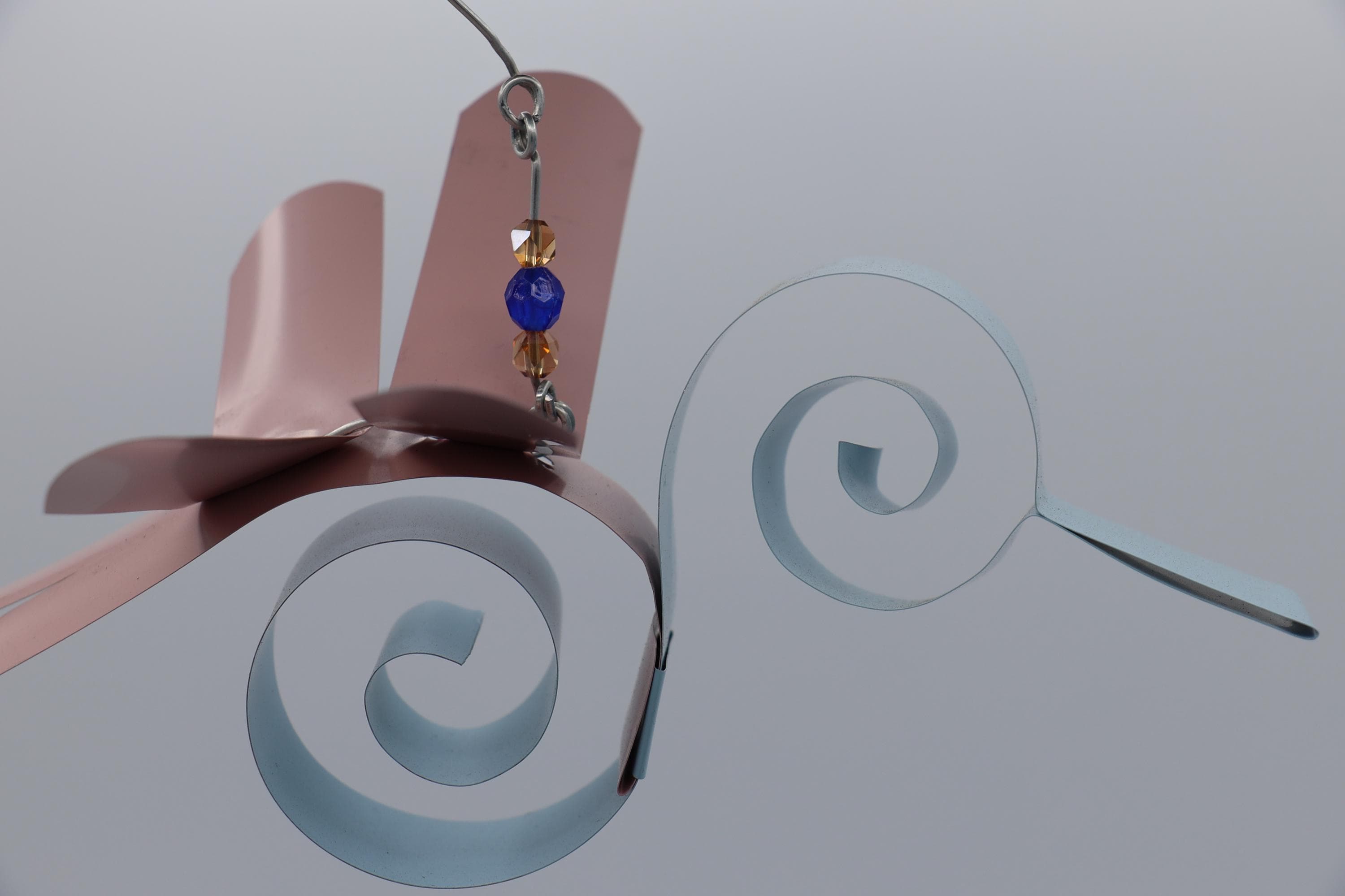 These birds have been shaped by hand from the slats of old metal mini-blinds. Each item will vary slightly as they are individually crafted. They are very lightweight and are designed to hang, but the wire and the metal can be bent out of shape if handled roughly. For that reason, and potential sharp edges, this is for decoration only, and you’ll want to keep this out of the reach of kids or pets or anyone else that might want to mess with it.